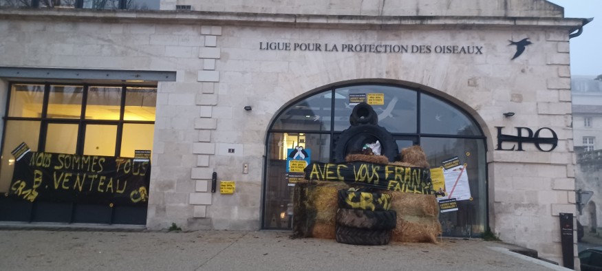 Le syndicat agricole participait à un mouvement national, et dans ce cadre plusieurs sites ont été visés avec dépôts de pneus, de pailles, des tags, et même tête de sanglier devant le siège de la LPO à Rochefort, la permanence parlementaire du député écologiste Benoît Biteau, Nature Environnement 17 à Surgères, la réserve de Moëze Oléron, ou encore l’Office Français de la Biodiversité à Courcoury, près de Saintes.
